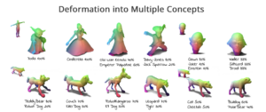 These modifications provided a huge advancement in both the quality and controllability of 3D-generated assets, as well as allowing more user agency and control over the generative process. To further push the boundaries of user controllability, Kim added the features of localized editing — for example, when changing a dog mesh to a turtle, localized editing allows a specific region to be selected such that only part of the dog changes to a turtle, not the entire mesh. This technique synergizes perfectly with MeshUp’s capability to blend concepts, as users can use the two techniques together to specify both where and how strongly each idea should be expressed, like changing a dog into 70% turtle mainly on the back and 30% bulldog on the head. These features would empower a broader audience, enabling even novice users unfamiliar with AI tasks to accomplish their goals in a way that previously could only be done by experts.